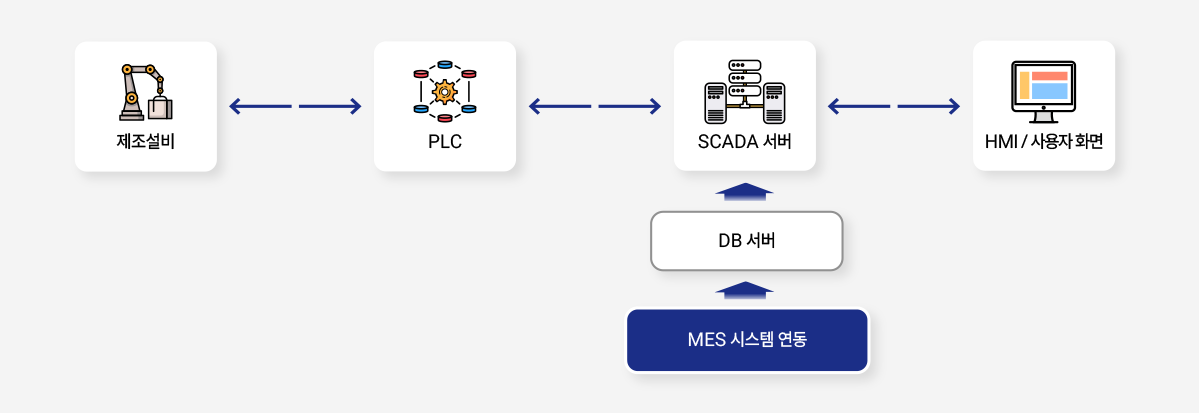 SCADA 시스템은 공장 내 다양한 설비와 기계를 실시간으로 감시하고 제어하는 통합 플랫폼입니다. 생산 효율성을 높이고 설비 가동률을 극대화하기 위해 필수적인 스마트팩토리 핵심 솔루션입니다.